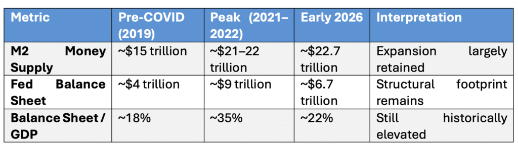 Cette médecine était vendue comme une médecine d’urgence. À bien des égards, c’était le cas. Mais l’argent de l’urgence ne s’évapore pas lorsque la crise s’estompe. Il perdure. Il circule. Il accumule des créances sur une économie réelle qui ne peut croître assez rapidement pour l’absorber.