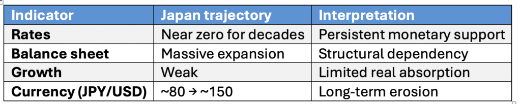 Ce qui émerge n’est pas une stratégie claire, mais une contradiction gérée, une banque centrale tentant de stabiliser un système dont les tensions internes ne sont plus facilement réconciliables.