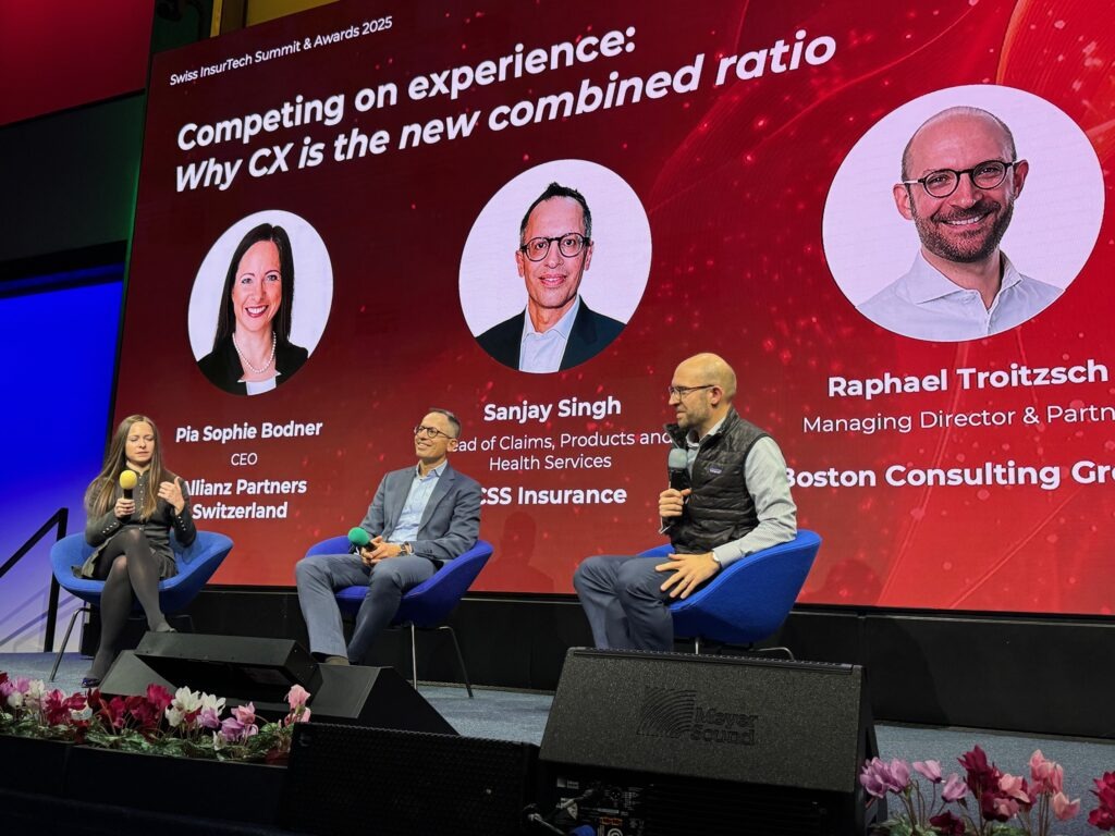 Im letzten Panel des Nachmittags diskutierten Pia Bodner, CEO bei Allianz Partners Schweiz, Sanjay Singh, Head of Claims, Products and Health Services bei CSS und Moderator Raphael Toitzsch, MD & Partne Boston Consulting Group über Kundenerlebnisse im Versicherungsalltag.